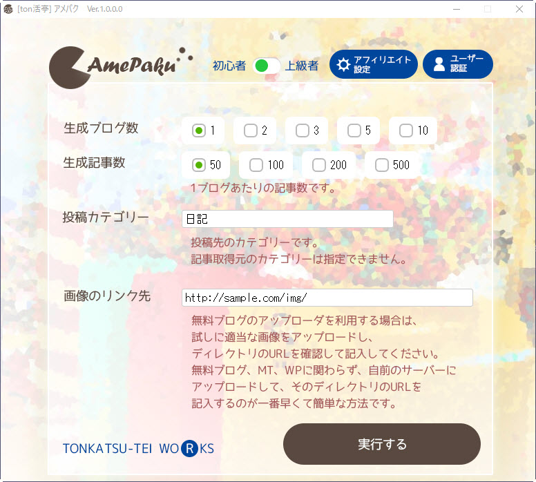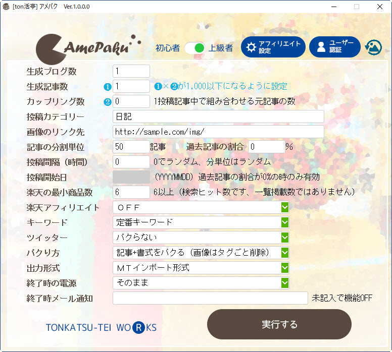アメパクは何も考えなくても、作りたい数だけ設定して実行すれば、ブログ記事を作ってくれます。