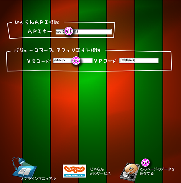 じゃらんwebサービスのAPIキーを記入してください。 ⇒