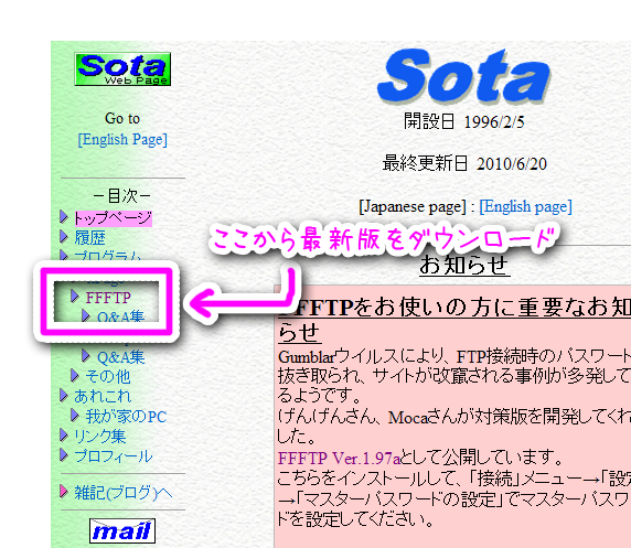 - こちらは、FFFTPのダウンロードの仕方から丁寧に図解で説明されてます。