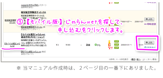 - 【モバイル版】じゃらんnet を探して、[申し込む]をクリックしてください。