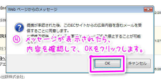 - メッセージが表示されたら、内容を確認して[OK]をクリックしてください。
