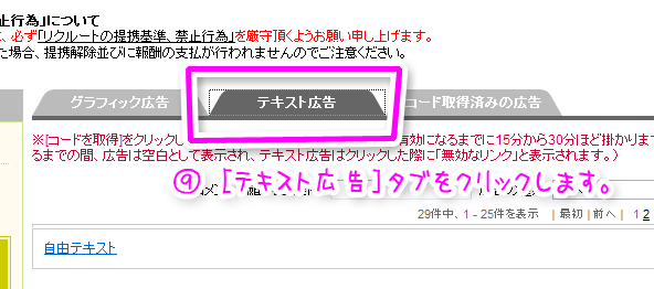 - [テキスト広告]タブをクリックしてください。