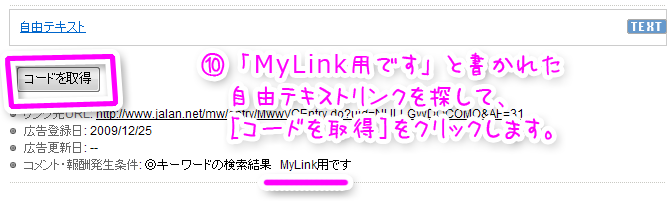 - 「MyLink用です」と書かれた、自由テキストリンクを探して