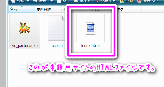 - vc_partner.exe が実行プログラム本体です。
