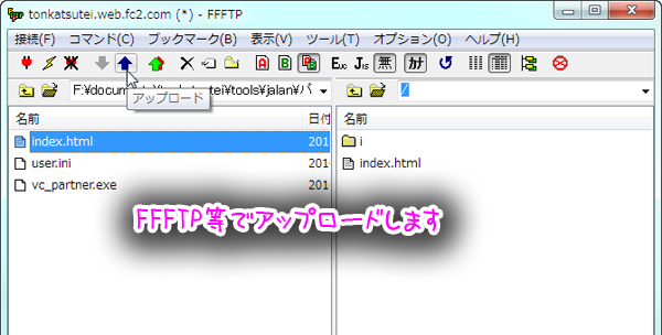 - FFFTP等でサーバーにアップロードしてください。